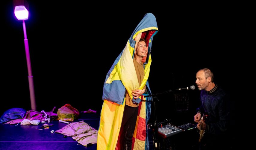Jaszak (2+) is een grappige, hartverwarmende voorstelling over een mens zonder dak in een veranderende wereld. Of verandert hij zelf? Geïnspireerd door de organisatie Sheltersuit maakt Simone de Jong Company een voorstelling als een muzikale trip voor kinderen van 2 tot 6 jaar. Een vervolg op de voorstelling Kluizelaar.